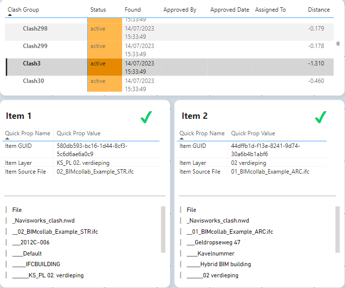 The Green check indicates that the association has occurred correctly and that we have a unique association between the model element and the Clash data.