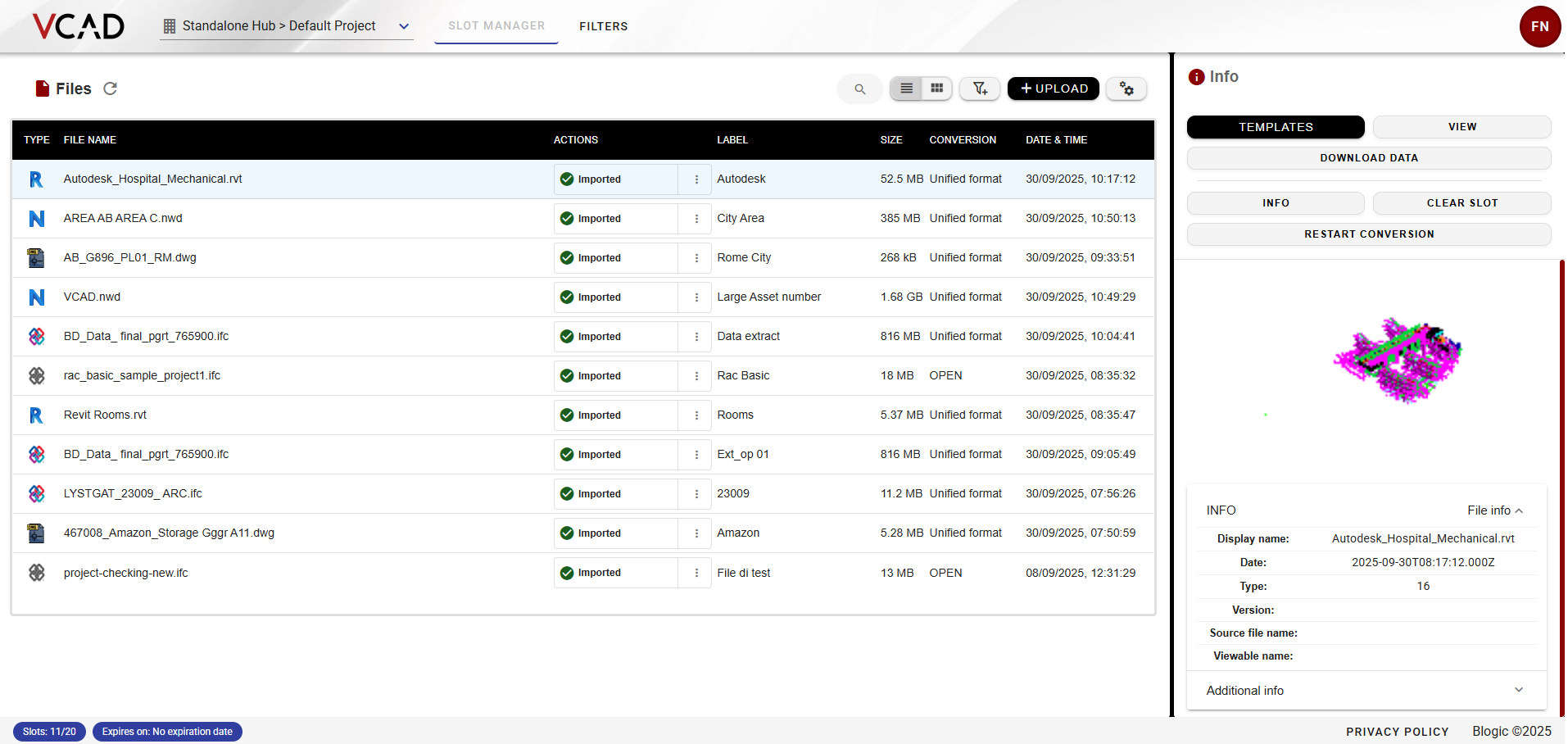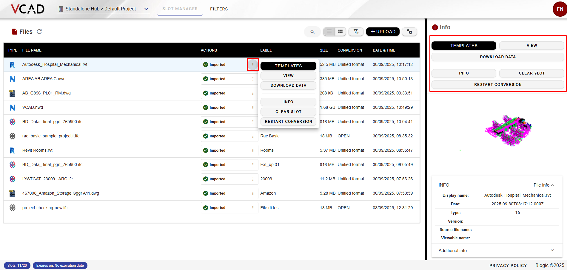 The Vcad App is the tool designed to manage your files with ease. From the App you can upload BIM files, download ready-to-use templates, and start working with your data right away.