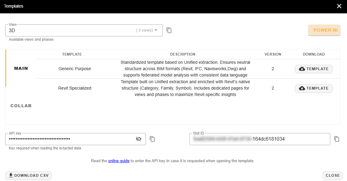 To open the template for the first time, you will need to enter your security key. This key prevents the .pbit or .pbix file from being accessed without authorization and must be entered upon the first opening of the file. The API key is unique and securely linked to each user. Click here to find out how to use the security API key.